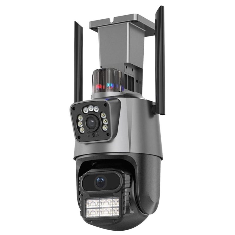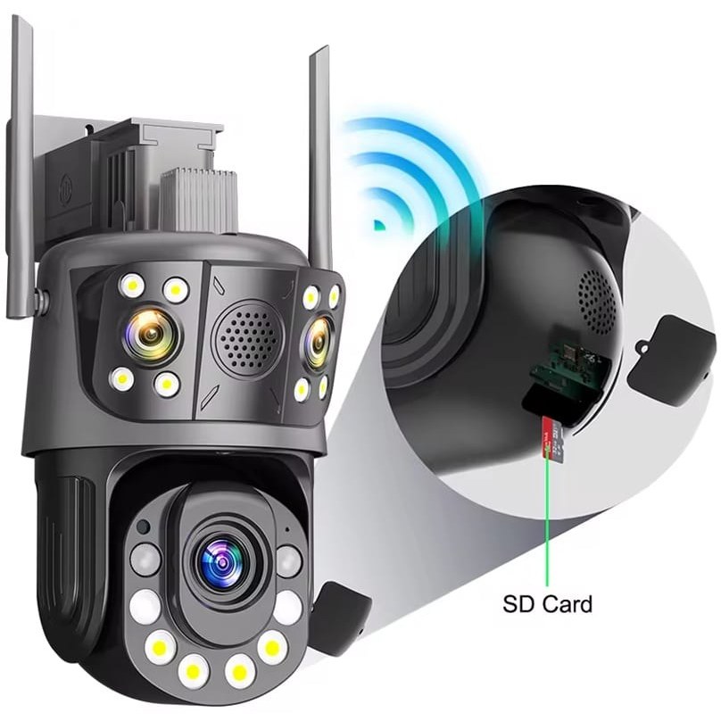 دوربین مداربسته مینی اسپیددام سیمکارتی Icsee سولار مدل سه لنز زوم 50x دید در شب رنگی 12 مگاپیکسل